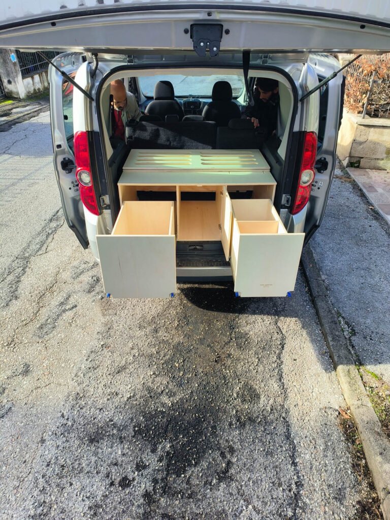 Se cerchi un mezzo compatto ma comunque databile di tutto l’essenziale per andare in libera, la Fiat Doblo è ciò che fa per te. Spazi ridotti ma più che sufficienti per poter inserire un modulo con letto fino a 175 cm di profondità.